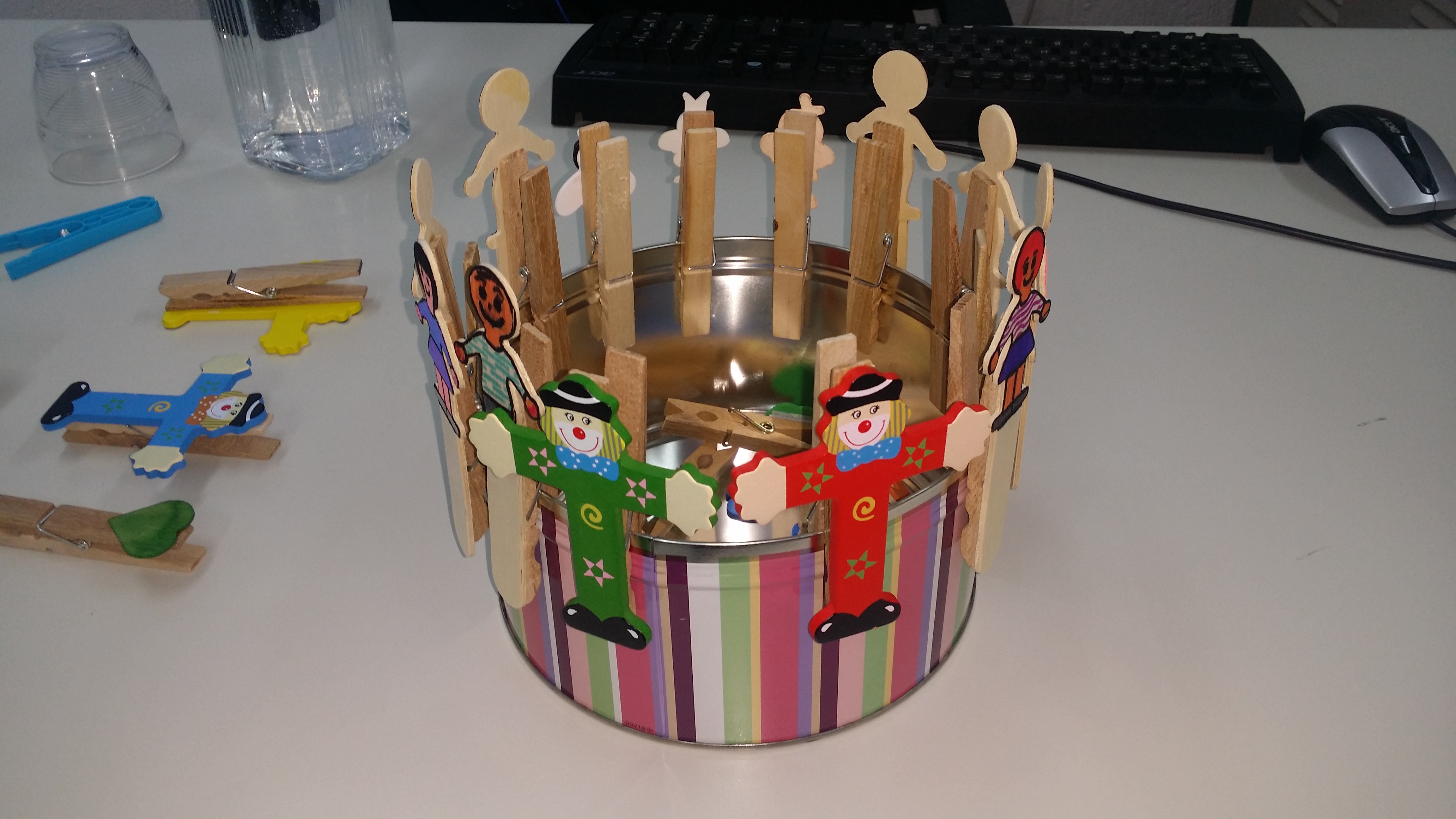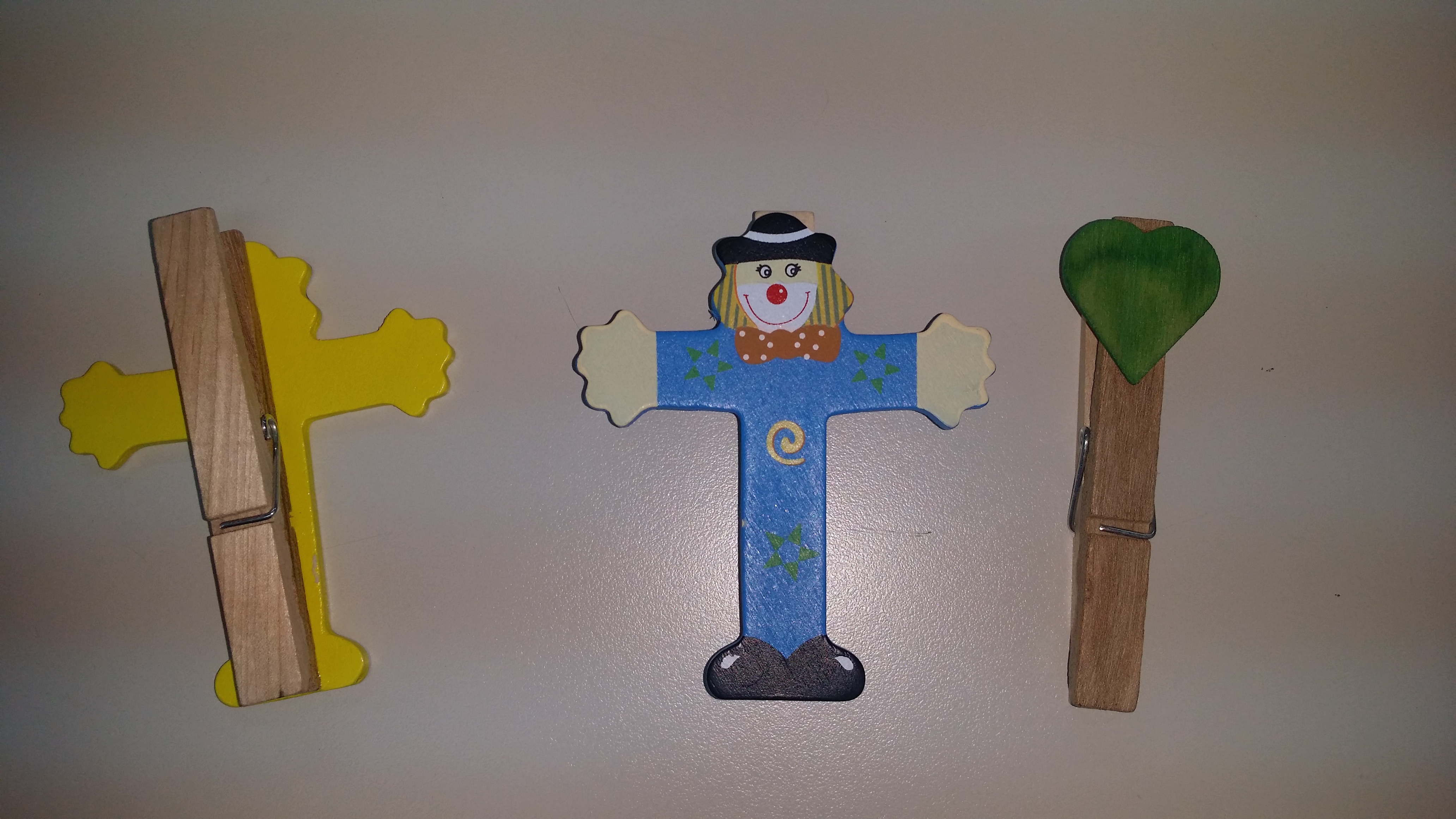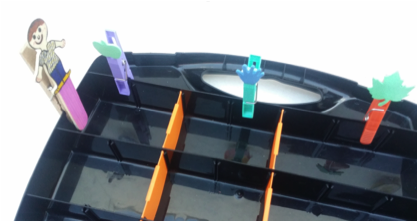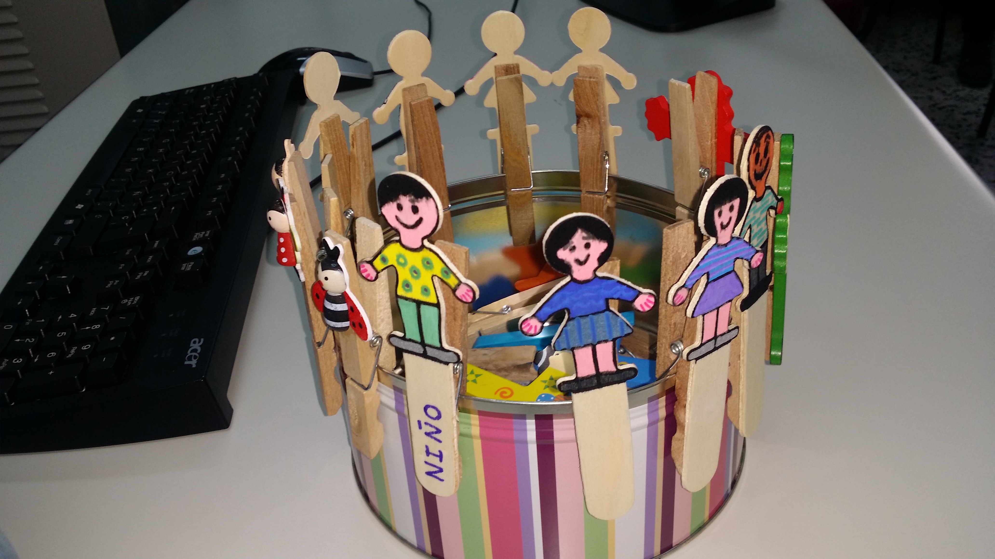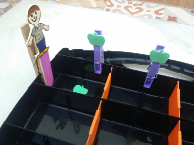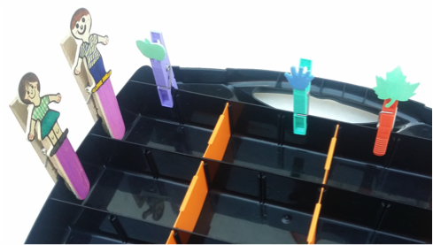 La pinzas son para sujetarlas en el lateral izquierdo y en el superior y en ellas pegaremos figuras de personas a las que le realizaremos el reparto y los artículos a repartir.